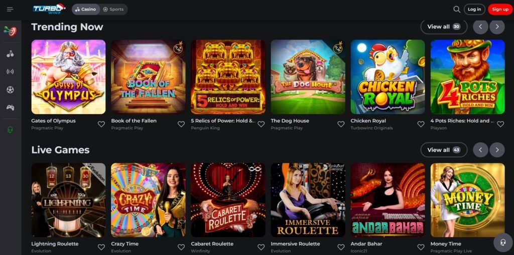 Turbowinz to miejsce, gdzie każdy gracz odnajdzie coś dla siebie dzięki imponującej bibliotece gier hazardowych online. Oferta platformy obejmuje tysiące slotów online od renomowanych dostawców, które wyróżniają się wysoką jakością grafiki, innowacyjnymi funkcjami i atrakcyjnymi wypłatami. Sloty online dostępne w kasynie to zarówno klasyczne automaty z owocami, jak i nowoczesne, tematyczne gry z wieloma liniami wygrywającymi, co gwarantuje różnorodność i zabawę na najwyższym poziomie.
