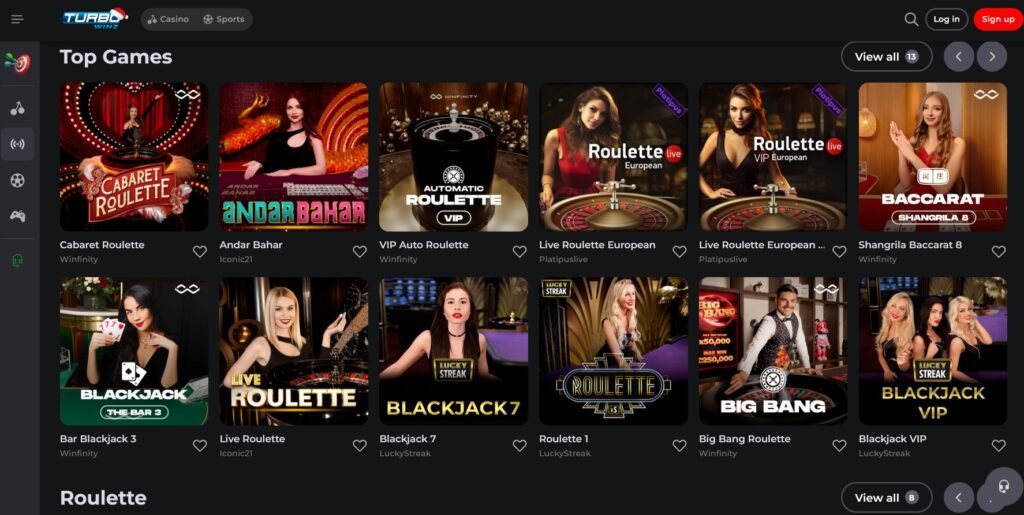 Gry hazardowe online w kasynie TurboWinz: sloty online, blackjack live i kasyno na żywo